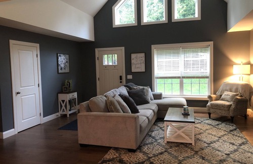We would love to share our home with you. Our home is only 10–15-minute ride south to Historic Saratoga Springs. A 10-minute drive North to Corinth, a small town that is equipped with a local grocery store and beach. The property offers plenty of parking space and U-shaped driveway. Included in your stay is the first-floor master suite with a huge infinity double head rain shower, guest room with a queen size bed, and our office with a queen size bed! Our open floor plan will be a hoot for your stay, this way you continue those special moments while cooking and entertaining. Additionally, you'll have access to our sprawling backyard. **Please note we allow up to 8 humans in the home though we only have sleeping arrangements listed above. **