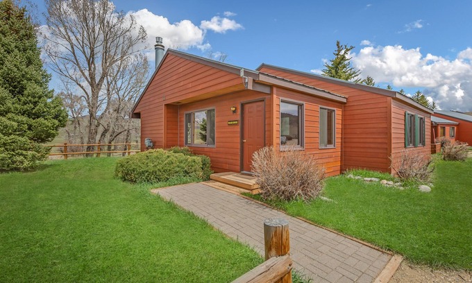 Wood Duck features a gas fireplace, and a fully equipped kitchen with a dishwasher, satellite TV, and Wi-Fi. Wood Duck sleeps up to four adults and up to six with children. The master bedroom has a King bed. The second bedroom has a Queen and a sleeper sofa is also available. Dogs are welcome. Come up to Glen Eden Resort for your next Colorado vacation and find out why we are a premier location for hosting families, weddings, fly fishermen, and outdoor enthusiasts!