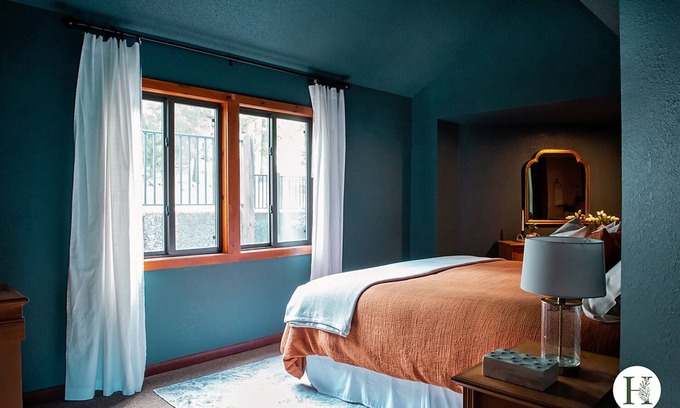 The secondary suite is secluded in the lower level, and features a queen bed, private full bath and private outdoor deck.