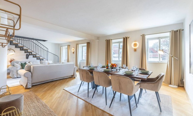 Welcome to our elegant and spacious apartment, located in the heart of Prague! Ideal for groups or large families, this stunning accommodation can accommodate up to 12 people. The apartment boasts 5 stylishly decorated bedrooms with comfortable double beds, as well as 2 pull-out sofas in the living room for added convenience.