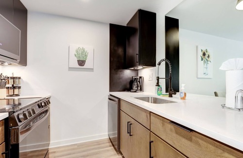 While you're here, you can enjoy all the comforts of home and more, including a full-sized refrigerator/freezer and an oven, as well as a stovetop and a dishwasher. Other amenities include towels, an electric kettle, kitchenware and utensils, and a toaster.