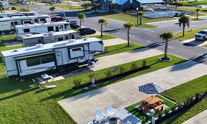 Premium RV Site ⛱️ Resort Amenities 👙Heated Pool🎢 Near OWA & Beaches 🐚🏝️🌊! | RV Rental in Foley