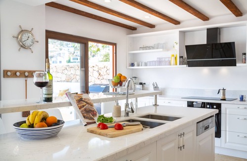 Set in the cliff face it is both private and exclusive. The view over Kalkan and the bay is simply breathtaking especially at night when you have a BBQ on the terrace.