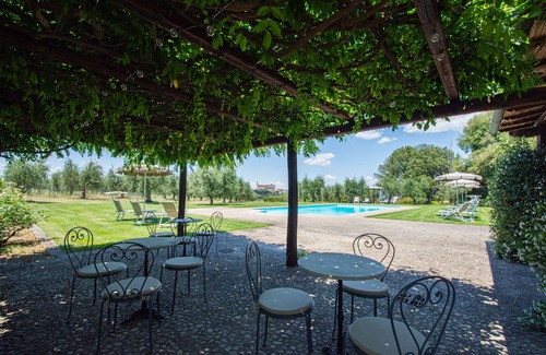 A few steps from the Villa, immersed in a garden of olive trees and lawn, the swimming pool with a unique view of Orvieto to be shared with the structure. Each accommodation has its own private umbrella. The property does not accept animals.