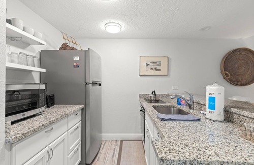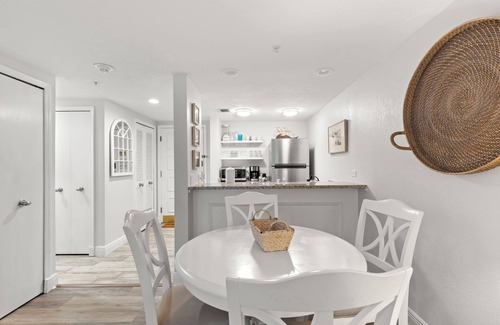 The living room sofa has a pull-out queen sleeper, dining space with walk out to the balcony patio. It is turn key and ready for your enjoyment. You will have access to the laundry room where you can do your laundry for free and hotel ice maker. Free parking is in the parking lot right outside your condo.