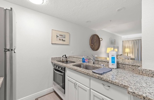 The kitchen is stocked with all your cooking and baking necessities, dishes, silverware, glasses etc. We provide Coffee Maker. A toaster and microwave are in your condo as well.