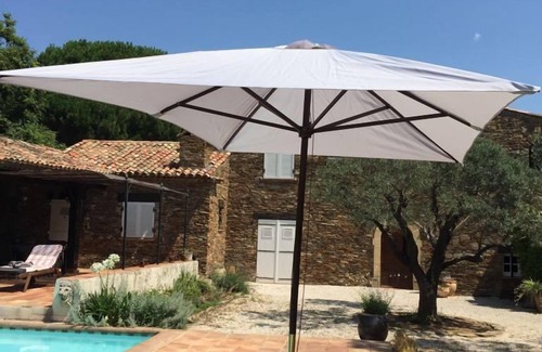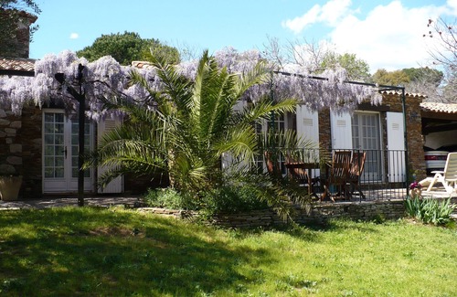 La Marmotte is lovely fully independent apartment which forms a wing of a beautiful stone built traditional provencal house in three hectares of ground with chestnut trees. The house is approximately four kilometres from the medieval village of La Garde Freinet. The apartment is on the ground floor with a large stone terrace covered partly by a pergola with access to the grounds and the swimming pool. The swimming pool is private to the house and used by residents of the main house (rarely there) and the apartment. The house is situated close to vineyards and woodland with lovely walks with breathtaking views. The village of La Garde Freinet is a 30 minute walk from the property. The village hosts a market twice a week and has a full range of shops, including a small supermarket with cash point, bars and restaurants. This is an extremely comfortable apartment with everything you could need. Although adjoining our house, the apartment is totally separate and undisturbed. There is a private terrace with sunbeds and a table and chairs, all with cushions. The apartment is light and airy with good cupboard space. Living area with a sofa bed; Kitchen; Double bedroom; Bathroom. The private terrace is perfect for alfresco meals or just passing a quiet moment with a glass of wine and a good book. It is shaded by a metal frame pergola covered with wisteria. There is private parking adjacent to the apartment. There is flat screen TV
