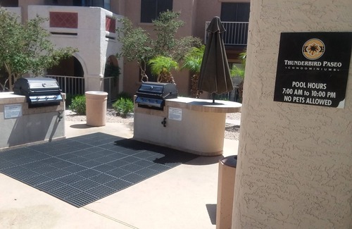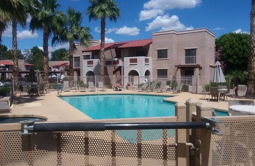 Recently remodeled ground floor 2 bedroom 1 1/4 bath condo in the Northwest Phoenix Metro, close to the Cardinals Stadium and Peoria Sports Complex. Made plush and special for your stay, so many items are new and upgraded...top load laundry, full size fridge with icemaker, coffeemaker for Keurig or fresh grounds, high pull-down kitchen faucet, new Kitchenaid mixer, LED lighting/ fixtures, large flat screen TVs , new shower, upgraded flooring, pillowtop mattresses, some built-in night lights, and more. Internet and cable for your entertainment. Hospital and grocery store across the street, plus restaurants, fast food, major banks nearby. Short drive to Arrowhead Mall for even more entertainment and dining/shopping. Biking or walking path (dry canal) behind the complex that goes for miles, and many nearby city parks for walking/ hiking as well. Many golf courses in the Valley of the Sun, plus a fun driving range (Topgolf) 11 miles away. The complex features a heated pool, community clubhouse with billiards table, and small exercise room. There is always scenic Sedona. the Grand Canyon, Kartchner Caverns, Saguaro National Park, Petrified Forest, Meteor Crater, mining towns, and (small) geode pickup, plus so much more! A 2 hour drive to Flagstaff takes you from our 1200 feet up to 7000 feet for quite a scenery and weather change . Beautiful Sedona, Prescott, and Payson are shorter drives than that but still in the mountains that surround the Valley of the Sun.