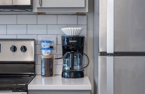 ✔ Coffee pot, filters, coffee, and cream & sugar