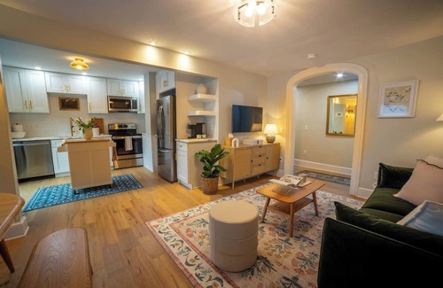 The apartment has everything you’ll need during your stay! Enjoy not only the convenient location, but the fully stocked kitchen, brand new beds with linens provided, exquisitely remodeled bathrooms with toiletries provided, and spacious living areas.