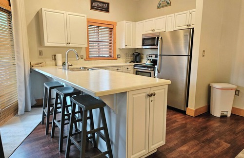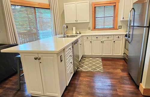 Our unit is one of the largest 2 bedroom, 2 bath condos in River Run, blending mountain decor with a contemporary flare. As property owners, your comfort is our priority. We recently added brand new super comfy mattresses and bedding, living room furniture (including a leather sectional sofa with a queen sized sleeper), new stainless steel appliances, a large flat screen TV's in every room, trendy curtains, new showers, fresh paint, new hardwood flooring throughout and ceiling fans in each bedroom. Enjoy comfort, style and location.
