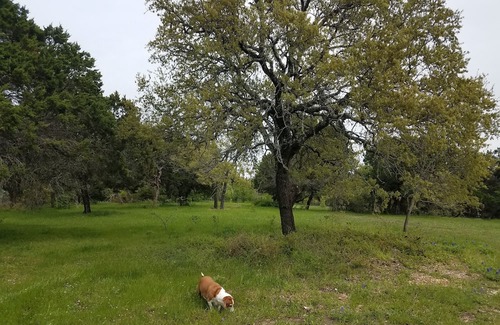 In the path of totality! Pitch your own tent & watch the eclipse in the tranquil beauty of nature. You will be close to town, but feel like you are in the middle of nowhere. This is a self-sufficient primitive camping area, 6 people per 40' x 80' site. No light or sound pollution on one of the few untouched areas of Central Texas. Common trash receptacles will be provided, but all other responsibility for supplies is on camper. There is no electricity, water, or sewer. As untouched property, be aware there are all types of species of wildlife.