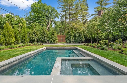 An elegant and inviting Princeton home ideal for small gatherings and family celebrations. Indoor and outdoor garden rooms are woven together to feel inviting, enjoyed and special. Relax in the heated pool and hot tub or end the day with a cocktail lounging around a beautiful concrete gas fire pit. Outside play a round of bocce ball or pick-up sticks with the kids or inside play a round of ping pong, Clue or other family favorites you are sure to remember. There are plenty of intimate spaces to find a cozy nook and read a book or watch TV. More active? The well-equipped gym includes a IFit treadmill, Peloton, rowing machines, weights, yoga mats (for the outdoor yoga deck) and more. The gym, main floor and outdoor area have a Sonos sound system.