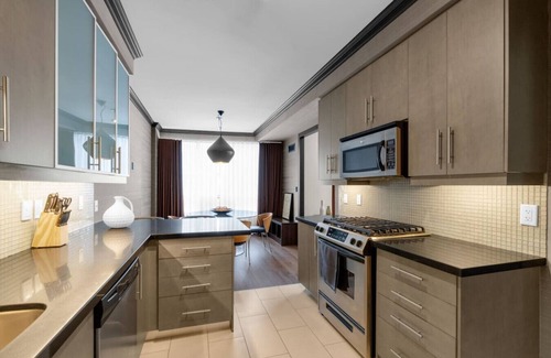 Priscilla Suites - CN Tower Views - Free Parking has 2 Bedrooms , 2 Bathrooms, and max occupancy of 6 people. The minimum rental for this property is 1 nights, but this can change depending on the season you plan on staying. Previous guests have given good rated it, and VRBO labeled it a top-rated Hotel because of the excellent services rendered by the owner or manager of this Hotel, and has consistently provided great experiences for their guests. Most families or guests that use it recommend it to their friends and some of them are repeat guests. Hotel has a friendly neighborhood, and the Toronto Entertainment District has interesting places to visit. If you want to learn more about the Hotel in Toronto Entertainment District, such as places to visit and things to do nearby, you can check below to learn more.