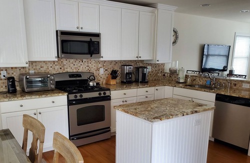 There are two living areas, one on each floor, both with flat screen televisions and DVD players. Cable and WiFi. Perfect for adults and kids! The fully appointed kitchen has granite countertops and all new stainless appliances.