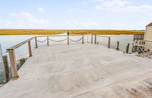 This floating home features 2 staterooms, 1.5 baths, an EIK w/granite counters & sliders to the upper deck & spiral staircase to lower deck/floating dock, a spacious living room, an entry foyers w/full-size W/D. Lower deck fits 22' boat & is great for fishing striped bass & snapper as well as enjoying ospreys, herons & other marine wildlife 24/7. Rooftop boasts panoramic bay views ideal for watching fireworks, stargazing & annual summer air shows.
