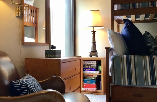 A true rental by owner. Everyone who visits here feels at home. The 2.5-story condo is beautifully and thoughtfully appointed, as we want our guests to have all they need. All the bedrooms have vaulted ceilings and most rooms face east so they're sun drenched throughout the day. Perfect for those who love to watch the sunrise with blackout panels for those who'd rather rise a little (or a lot) later. The kitchen and living room make for easy socializing with extra seating and ottomans so everyone can put their feet up. We love to cook and bake so everything you need to whip up meals and post skiing treats is at your fingertips while staying in the mix with friends and family. The balconies overlooking the pool make it easy to hit the hot tub without being surprised by a crowd or to call down to offer help to those who might be using one of the two gas grills poolside. The option of the upstairs seating area with its own fireplace and TV make it ideal for families sharing the space. Once here it's easy and ideal to park the car and walk or ride the bus to your destination. Should you choose to take a shuttle from the airport, City Market will deliver your groceries to ensure you're fully stocked when you arrive.