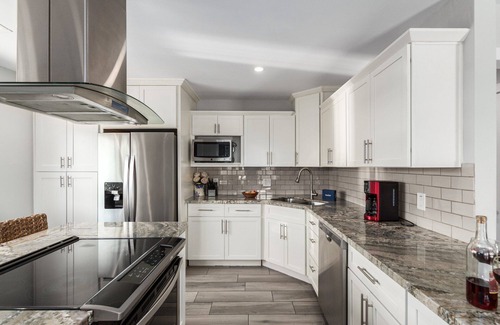 As you settle into this 4-bedroom, 3.5-bathroom rental, you'll find a living room, a dining area, a fireplace, and air conditioning. The kitchen is equipped with an oven, a stovetop, and a refrigerator, as well as a microwave and cookware. And there's a dryer, so you can even pack a bit lighter.