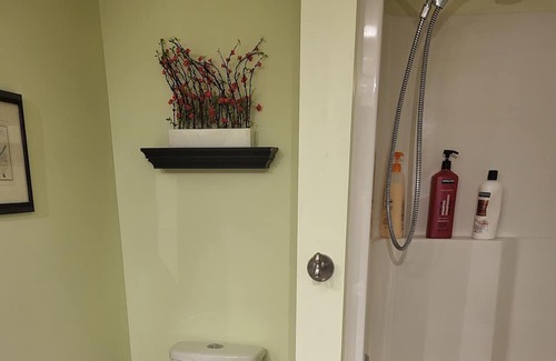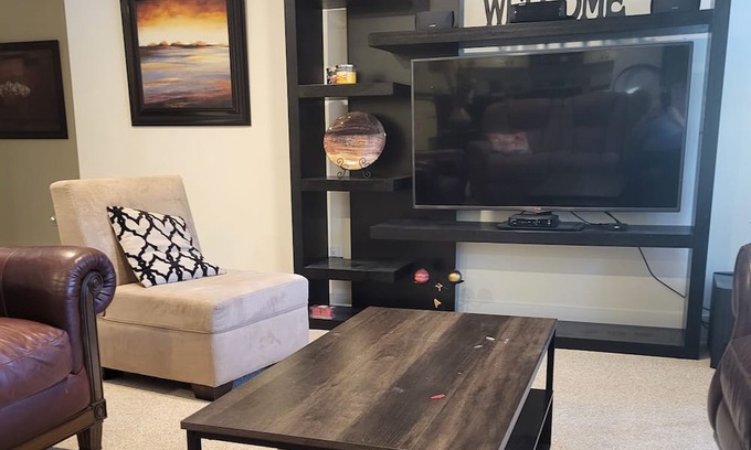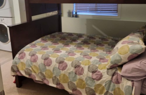 Enjoy a clean, peaceful, private stay with all the amenities of home. A large suite with private entrance only 15 minutes to downtown, restaurants, beaches, golfing, shopping or sports. Explore the Wine Trail minutes away. Relax with a glass of wine on the patio while enjoying beautiful mountain and yard views. The spacious kitchen is fully equipped for home cooking. Perhaps you prefer to BBQ outside on the patio. The beds in our Sea Breeze and Tranquil Oasis bedrooms are clean and super comfortable. Sea Breeze room is bright and spacious and overlooks the yard and mountains. Tranquil Oasis has a double bed with an overhead twin bunk. The full-sized stacked washer & dryer is located in the large walk in closet alongside clothes storage and a fold down computer desk. The great room is bright, spacious, and has plenty of seating. Large ground level picture windows overlook yard & mountain views. Fold down the Lazyboy dual recliner and enjoy Netfix or cable TV on the Smart TV. Open the Tickle Trunk and select a board game, trivia, adult game, or cards. Enjoy takeout or a home-cooked meal at the kitchen island, around the large kitchen table, or out on the patio table. The tap water from our new state of the art water treatment plant is excellent.