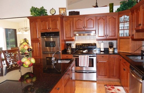 Have your breakfast and morning coffee from the Keurig on the lanai as you plan your day! The kitchen opens to the living area and features solid counter tops with a breakfast bar and 3 stools, ample cabinets, dishwasher, microwave, range, and everything else you need for preparing, cooking, and serving your vacation meals. making this the perfect space for cooking and entertaining.