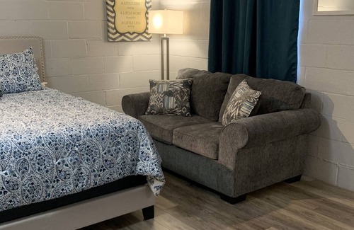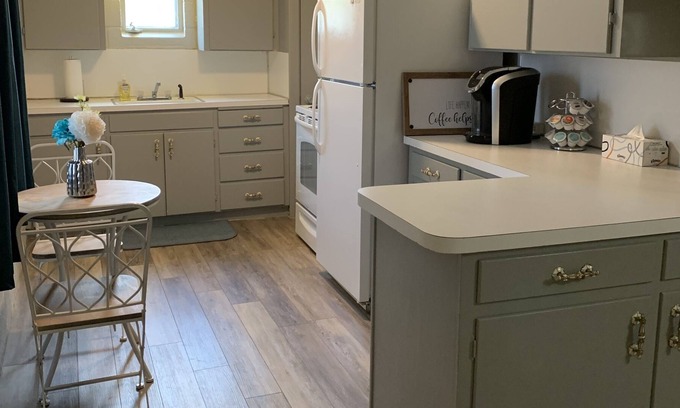 Guesthouse on 4 acres with access to a pool. Main room with 2 queen beds, tv with DVD player and fire stick. Kitchen with full size fridge, stove, keurig coffee pot with plenty of coffee choices. Bathroom has tub/shower.