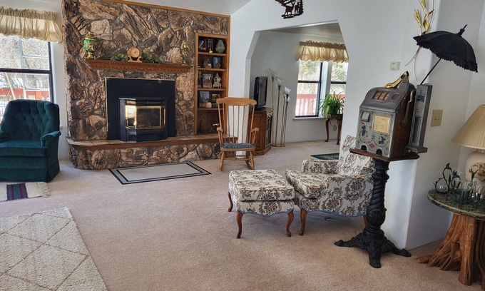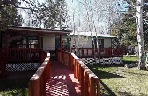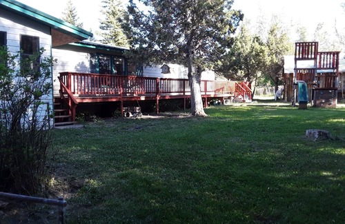Ready to get out of the city for a safe getaway? This beautiful destination is located at the North slope of the UInta Mountain Range, sitting at the crossroads of Interstate 80 and Wyoming Highways 410 and 414. This area serves as one of the primary entrances to the High Uinta Mountains and the Wasatch Cashe National Forest where there is unlimited hunting, fishing, camping, and hundreds of miles of trails for hiking, mountain biking, cross country skiing and ATV and snowmobile riding.! Just one hour from Flaming Gorge! All handicapped accessible, focusing on family outings, this house sleeps 10 plus... 3-bedroom, 2 full-baths, 2 living rooms, dining room and kitchen all wrapped around an outside deck. Abundance of pine,, juniper, and aspen trees surrounded by a creek....Outdoor playground for the kids in a huge backyard all fenced in which makes it safe for the kids to run free! You might even see an occasional deer or moose stroll through, depending on what time of year you visit.. We also have a small petting zoo for the kiddos! Plenty of parking for boats, or ATV's! If traveling without transportation, we are right next door and able to give you a ride to the lake or to the nearest town. We have a peddle boat that you can take to the lake up the road to fish or just lounge. Pick your choice of serenity, and we will make sure it happens! We truly are the hostess with the mostess...Time to get out out of that city and breathe some fresh Wyoming air!!
