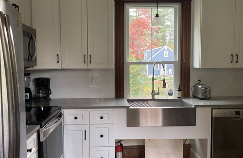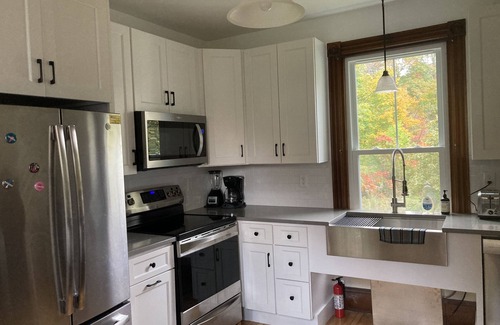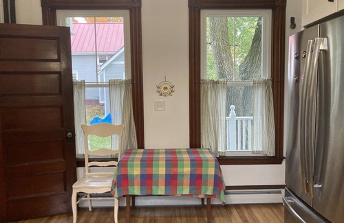 This charming, Victorian house has recently been renovated, and the first floor is now available to rent as a studio apartment. The rest of the property and grounds are unoccupied for your privacy. It has a new, modern kitchen, a small bath with a walk-in shower, a lovely dining room, and a living room/bedroom area with a comfortable, king sized bed. A five-to-ten-minute walk will get you to downtown Freeport and the L.L. Bean flagship store, shops, and restaurants. The trails and rocky coast of Wolfe’s Neck Woods State Park and the beach at Winslow Park are less than a 15-minute drive away.