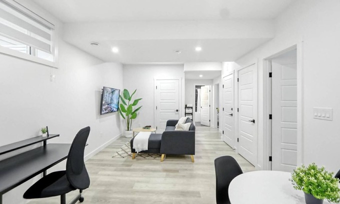 The suite is close to parks, trails, grocery stores such as Costco, and restaurants. Relax in comfort while being near everything Calgary has to offer. This fully private 2-bedroom basement suite with side entrance is perfect for couples, professionals and small families. Book now and enjoy everything this house has to offer.