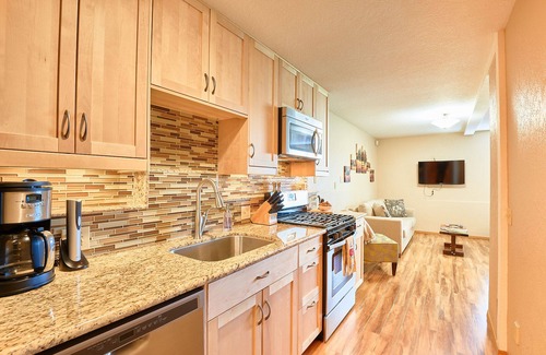 Garden Level Suite: 3 Queen Bedrooms | 1 Full Bathroom with Standing Shower | Galley Kitchen | Hot Tub | Landscaping
