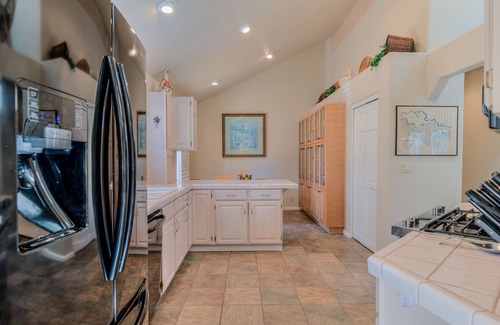 The fully stocked kitchen is a dream for home chefs, complete with a gas range and plenty of seating—choose from the breakfast nook, kitchen bar, or spacious dining area. And when the weather’s right, fire up the plumbed gas BBQ on the back patio and dine al fresco.