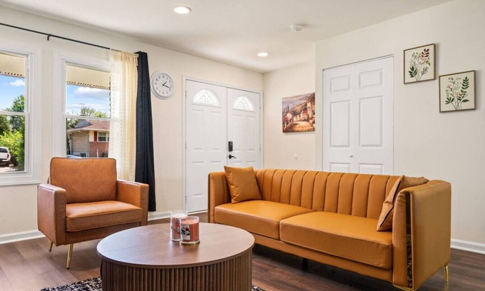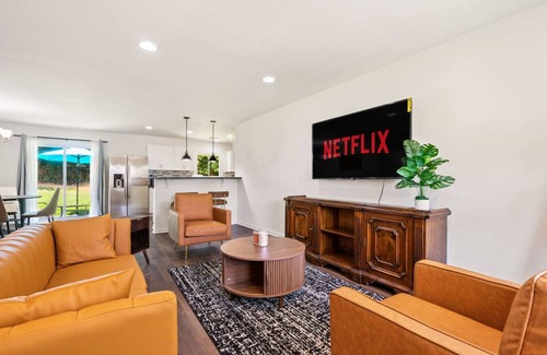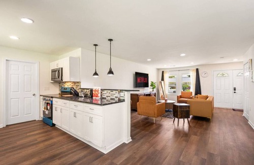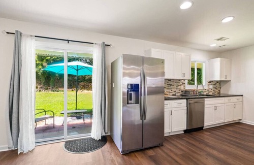 This private single family home features a bright and airy layout with open-plan living and dining areas, perfect for relaxing or entertaining. A well-appointed kitchen with modern appliances, including a fridge, range, dishwasher, microwave, and garbage disposal. Three bedrooms with comfortable queen-size mattresses, and two bathrooms, offering ample space for families, couples, or solo travelers. All one-level ranch-style home with easy access for the elderly (no stairs). Heat is provided via forced-air systems, with central A/C to keep you cool year-round.