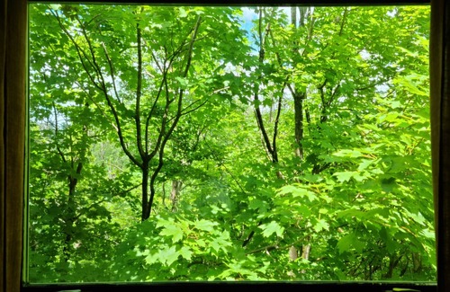 Beautiful home with privacy, views, two fireplaces and large yard with sport court on 1.35 Acres. Vacation or Work Remotely from desk with bay window view overlooking tree tops, with a monitor and printer in place.