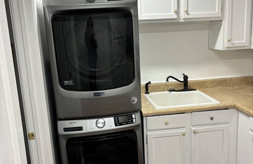 This Brooks house boasts 7 inviting bedrooms, including 1 king bed and 9 queen beds. With 6.5 bathrooms equipped with amenities like a hair dryer, shower, and bathtub, guests will feel right at home. The lovely living room offers additional space with a cozy futon for relaxation. We hope you'll enjoy your stay at our house.