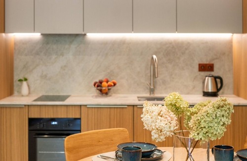 Fully equipped kitchen with induction hob, oven, fridge with freezer, dishwasher, kettle, coffee machine, toaster, plus dishes and cooking utensils to make you feel at home.
