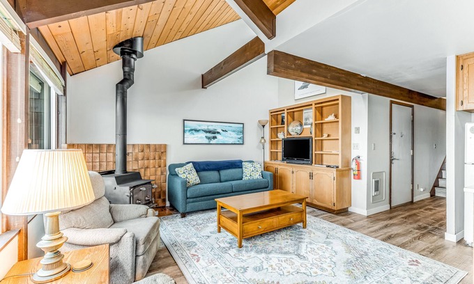 When it's time for bed, the two bedrooms offer a king and queen bed, with a sofabed in the living room. From the king bedroom, you'll even have a gorgeous Yaquina Bay view. And don't forget the dogs! Up to two dogs are welcome here with a small nightly fee.