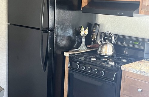 The Gnome Home sleeps two comfortably in the queen size bedroom and two more in the double size sleeper/sofa in the main living area. There is one bathroom with a shower, having a skylight overhead. The small laundry set, a full size refrigerator, propane stove and microwave oven all add to your convenient stay. An electric fireplace provides some cozy ambiance while you relax in the living room and watch basic cable T.V. or find entertainment with WIFI.