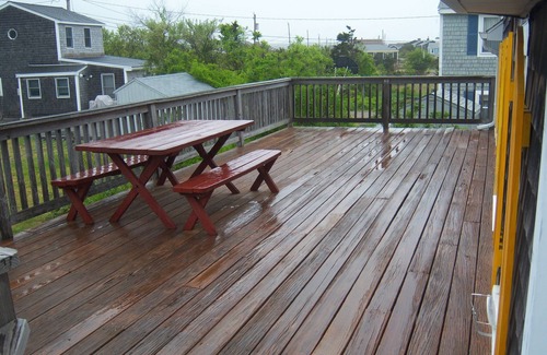 we are at the end of a mile long road . private . very quiet family area. beach steps from house, cape cod canal to right, full stocked kitchen. 3 sided huge deck, 2 new 40 inch flat screen tv s , high speed wifi. house overlooks cape cod bay. ships go right by. 2 baths , top floor has a whirlpool bath, 5 beach chairs great of knotty pine woodwork a true cape cod look . a comfortable home not a cottage.