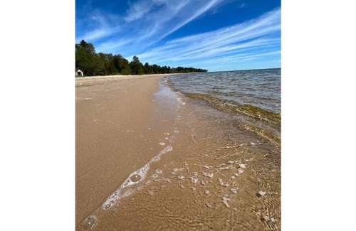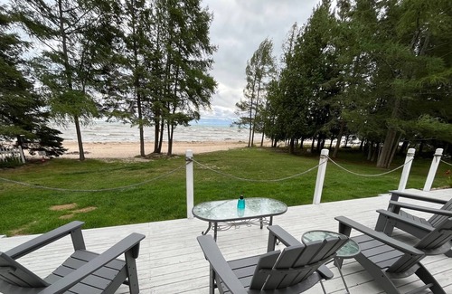 Experience where rustic meets refinement on pristine Lake Huron--with 200 feet of private beach! A perfect escape for families, small groups, or anyone seeking a peaceful retreat, this beautiful vacation home is surrounded by woods and set on a sandy beach, and even has a backyard. Enjoy a drink on the expansive outdoor deck, dinner in the gazebo with a stunning view of Lake Huron, and hear the waves crashing while watching the sunrise from your bedroom window. This is your perfect getaway!