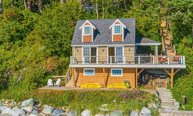Private beachfront cottage with expansive deck, kayaks, elegant interior, & W/D | House in Point Roberts