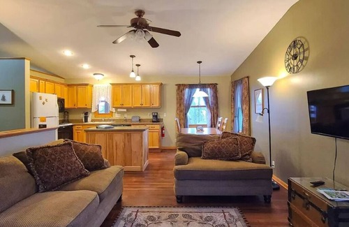 We hope that you will be surprised and delighted by how spacious and comfortable the cottage is! The upstairs has two bedrooms and large bathroom while the basement provides it's own private living area with a bedroom, couch, table and bathroom. There is a complete laundry room with detergent and dryer sheets for your use.