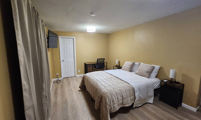 Welcome to your cozy and private retreat! This quiet guest room offers all the comforts of home, featuring a queen-sized bed, a private fridge and microwave, a dedicated office desk, and a private bathroom. Enjoy your own entrance and keyless access with a provided code for added convenience.
