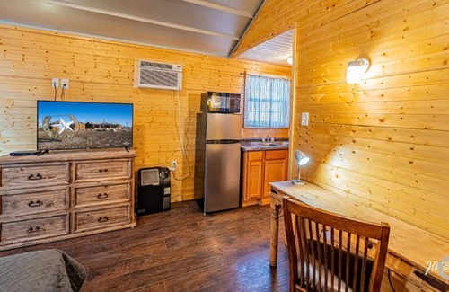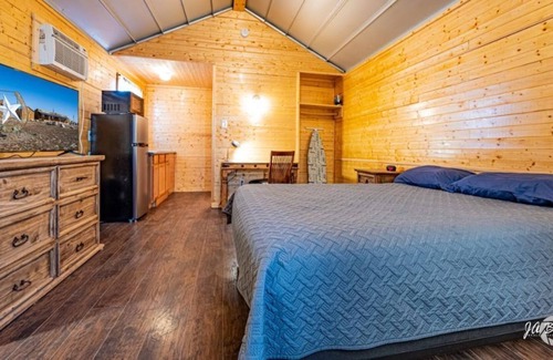Completely private detached cabin. Comes with 1 Double bed, a Kitchenette - Fridge, Microwave, Cooktop. A Private Bathroom and Shower. Flat Screen TV, Free Wifi. Free Laundry Room, Ice Machine & Pool Table on Property.