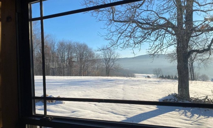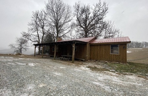 Built in 2021 and new for rent January, 2022, this beautifully constructed cabin in the Laurel Mountains sleeps 4. Spectacular mountain views from picture windows on either side of stone wood burning fireplace. Cabin is situated on 14 private acres. Completely private with views of mountains, woods, and wildlife from all windows. Property is partially fields and partially wooded with walking paths. Full bath with tiled shower and stone sink. Warm and cozy with 2 heating/AC split units. Full kitchen with refrigerator, stove, oven, microwave, and breakfast island, stocked with all essentials for cooking (utensils, pots, etc...). Dining table seats 4 and expands to seat 6. Queen size log bed, full size sleeper sofa, love seat. Washer and Dryer. Approx 700 square feet. Linens (sheets, blankets, pillows, towels) provided.
