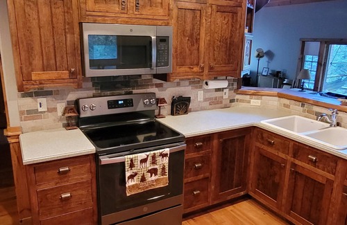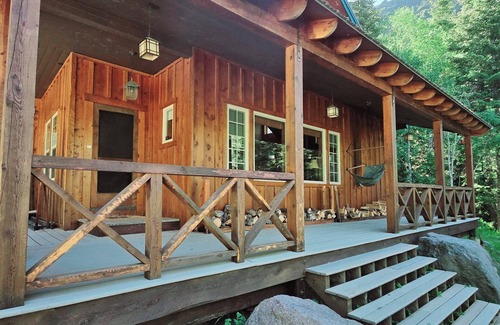 Cross our bridge over a beautiful river and enter your private Cabin tucked away in the woods. With gorgeous forest views from every window and stunning woodworking surrounding you indoors. Come relax on our big porch or find adventure on the popular ATV trails, hiking, historic landmarks, fishing, hunting, river rafting, photagraphy, and more!