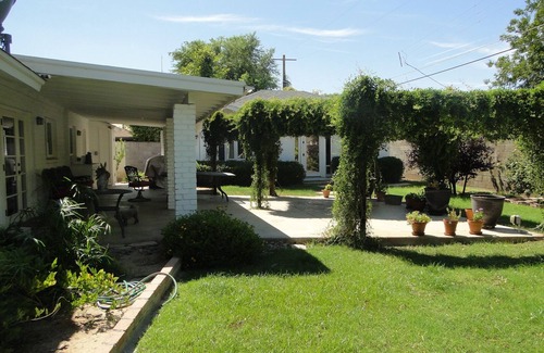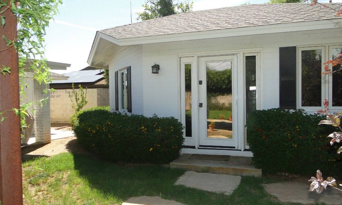 Detached casita with private entrance on one of the best streets in Arcadia Lite! Locked gate at entry, locks on casita. Laundry use available in main house. Mid-size refrigerator, microwave, hot plate, cookware, dinnerware, glassware, etc. Fully furnished with king bed, desk and office chair, dinette, recliner, tv. Walk to LGO, Postino, Ingo, North, CVS, AJ's, Buck 'n Rider, Global Ambassador and more! See Arcadia's famous wild lovebirds every morning in the yard!