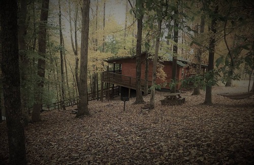 The cabin is surrounded by woods and offers two decks to enjoy the view from. You can sit and listen to the birds, or watch the squirrels jump from tree to tree. Enjoy a hike along the creek thru the woods, or just relax with a fishing pole while floating along in our two person fishing boat (at no extra charge).