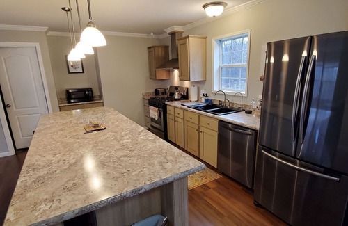 Peaceful and quiet Catskill mountain getaway with great views just over 2 hours from NYC. Home is newly constructed with spacious open floor plan with modern kitchen, master suite, and huge outdoor space. Close to the best hiking trails in the Catskills, with the highest peaks less than 30 minutes away. Outdoor space is gently sloped, perfect for snow sledding and tubing in the winter (search YouTube for Tranquil Mountainside Retreat to see our videos). There is a private hiking trail fully contained on the premises, just find the yellow checker blazes on the trees. For Internet and Wi-Fi, we are lucky to have fast cable service from Spectrum, 400 Mbps. Fully flexible cancellation policy.