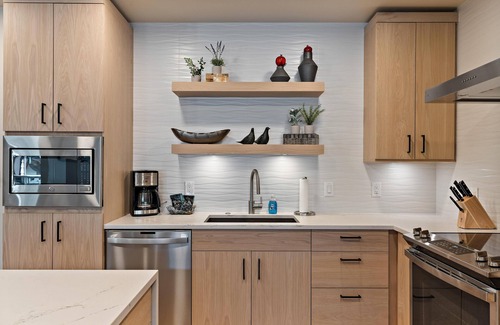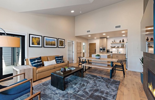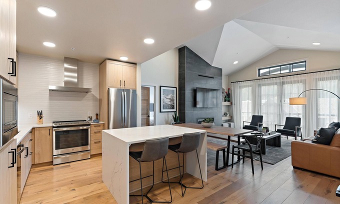 Be one of the first to enjoy the ambiance of staying in this large two-bedroom condo with 2 bathrooms. It is located on the 5th floor of the Megeve building overlooking the Village Plaza, and also boasts scenic mountain views. It’s located in the Village Plaza next to Clearwater Coffee, the Village Market, and the Reserve fine dining. This amazing unit features nearly 1,000 square feet of living space with extra windows that provide lots of natural light. The new Mountain Contemporary design will not disappoint, featuring an open floor plan with white oak floors and a gas fireplace. The Master Bedroom has a King-sized bed and an ensuite bathroom. The Guest Bedroom also has a King-sized bed, and the Living Room has a Queen sleeper sofa. This lovely retreat includes a fully equipped kitchen with stainless appliances, quartz counters, and a large center island. Guests will enjoy free Wi-Fi and cable TV plus use of the temperature-controlled underground parking garage. The location is ideal! You are located only a few short steps away from dining, shopping, and the base of the ski hill.