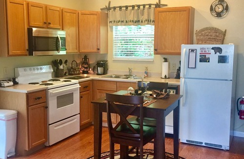 You can plan a private cookout for two on the park-style charcoal grill located near the entry of the chalet and enjoy your meal on the porch surrounded by the beauty of the Great Smoky Mountains National Park. If you choose to go out for dinner, you will find excellent dining choices just a few miles down the mountain in downtown Gatlinburg or at Ober Mountain Ski Resort. You may choose to drive a very short distance and park at Ober Mountain and ride the Aerial Tram down the mountain to dine or shop in the many unique shops downtown. As a member of Chalet Village Owner's Club please use our membership card provided for access to three club houses on the mountain, each with pools (seasonal), recreational areas and exercise equipment. This card also offers discounts at numerous attractions and restaurants in the Gatlinburg area. You are sure to find the ingredients for a perfect Smoky Mountain getaway at Bear Whisperer Chalet!