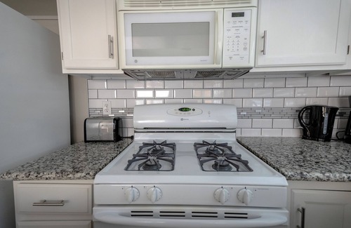 This wonderful home has just been fully remodeled and guests will be able to feel the relaxing and inviting energy from the moment they walk through the front door. With about 1200 square feet, it holds a living room, dining room, kitchen, 1 bedroom with a queen bed and 1 bedroom with a king bed. There are two full bathrooms and each room has its own private access to each bathroom. It also has 2 dedicated work spaces for our guests who work from home. Guests can relax under the gazebo in the private backyard surrounded by hanging lights.